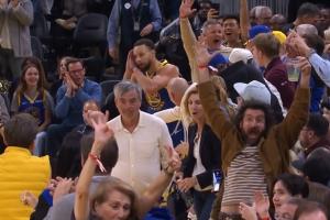 GIF-庫里連續(xù)撤步 三分轟進(jìn) 但好像踩線了!殺死比賽!