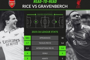 體育資訊1月9日訊 阿森納和利物浦將在本輪英超迎來強強對決,whoscored也對比了兩隊后腰本賽季的關鍵數據。