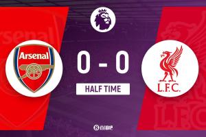 上半場傷停補時2分鐘,半場結束,阿森納暫0-0利物浦。