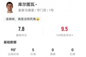 體育資訊1月9日訊 皇馬在本輪西超杯對陣馬競,庫爾圖瓦本場數據如下: