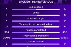 據Squawka統計,2015年8月之后,阿森納vs利物浦的英超比賽首次互交白卷。