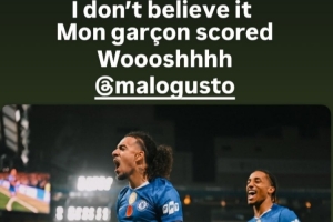 他的隊友科爾維爾也通過社媒曬照調(diào)侃:“我不相信!我的男孩進(jìn)球了,嗖!@古斯托”。