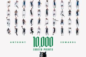 截至發稿時,森林狼球星愛德華茲本場已經得到23分,NBA生涯常規賽總得分突破10000大關。