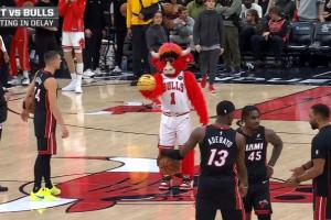 等待期間,熱火球員希羅與公牛吉祥物進行半場背投比賽,結果公牛吉祥物一擊命中,希羅見狀宣布直接退出較量。