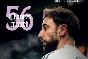 曼聯曬B費數據海報,他本賽季聯賽創造56次機會,送出8記助攻,兩項數據均在英超領跑。