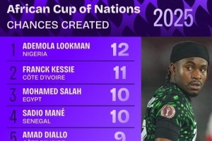 體育資訊1月9日訊 非洲杯激戰正酣,數據機構squawka也統計了本屆非洲杯創造機會情況,盧克曼力壓群雄居首。