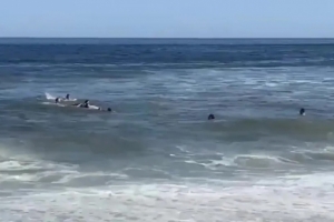 當地居民透露,救援者為幾位正在換班間隙沖浪的救生員。現場視頻顯示,孩子們趴在一塊沖浪板上,在浪濤中逐漸被推向岸邊,靠近沙灘時另有其他當地人上前協助。德米凱利斯當時在板后幫助推扶,待全員安全上岸后,岸邊響起了掌聲。