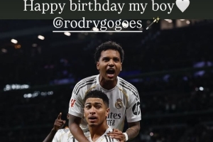 體育資訊1月10日訊 皇馬邊鋒羅德里戈在今日迎來了25歲生日,他的隊友貝林厄姆也通過社媒送上祝福。