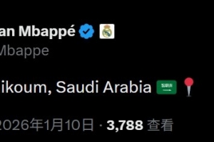 姆巴佩通過社媒發(fā)文:“Salam Alaikoum(阿拉伯語‘你好’),沙特阿拉伯”,同時還附上了沙特國旗和定位符號。
