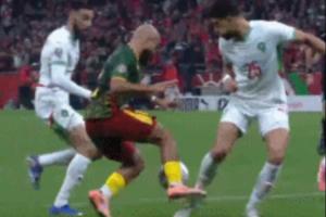 比賽第68分鐘,姆伯莫帶球突入禁區(qū)后痛苦倒地,裁判沒有判給喀麥隆隊(duì)點(diǎn)球,回放來看,摩洛哥球員與姆伯莫的右腿有一個(gè)接觸。