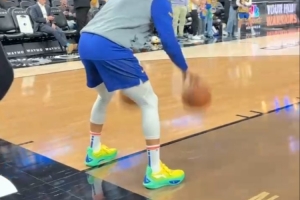 庫(kù)里今天穿著巴特勒簽名鞋JB3 Samba Dancer參加賽前訓(xùn)練