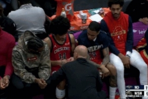 GIF-隊醫在替補席上給皮維檢查傷勢