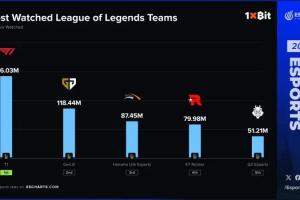體育資訊1月10日訊??今日外媒統(tǒng)計(jì)2025年度英雄聯(lián)盟戰(zhàn)隊(duì)收視率排名(不包含大陸地區(qū)數(shù)據(jù)),具體如下: