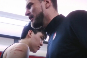 賽后更衣室內(nèi),球隊臨時主帥斯普利特滿臉笑容,里斯獲得球隊本場最佳防守球員,與斯普利特擁抱時,楊瀚森的手臂抓傷清晰可見。