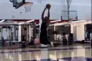 據(jù)快船隨隊(duì)記者Law Murray報(bào)道,克里斯·保羅在洛杉磯Playa Vista的老快船訓(xùn)練基地練習(xí)扣籃。