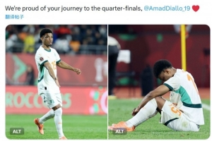曼聯官方社媒曬出阿瑪德在國家隊的照片,并寫道:“向阿瑪德致以慰問,他所在的球隊在周六的非洲杯比賽中出局。”