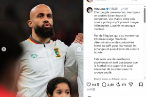 喀麥隆前鋒姆伯莫社媒寫道:“親愛的喀麥隆民眾,感謝你們在整個賽事期間給予的支持,你們的歌聲和吶喊一直支撐著我們走到現在,盡管我們被淘汰了,但未來只會更好。”
