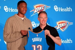 索伯現(xiàn)年19歲,身高2米08,體重113公斤,臂展約2米29,司職中鋒/大前鋒,在去年選秀大會(huì)首輪第15順位被雷霆選中。