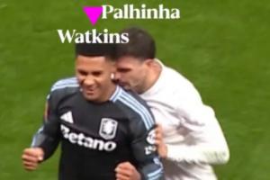 在終場哨聲吹響后,維拉前鋒沃特金斯來到底線面向看臺慶祝,看似有意無意的身體接觸惹惱了帕利尼亞,后者將沃特金斯推搡出場外,瞬間點燃兩隊球員的情緒。