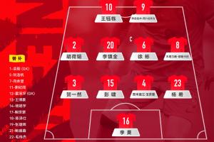 U23國足首發:16-李昊、2-胡荷韜、3-賀一然、4-吾米提江、15-彭嘯、23-楊希、6-徐彬、20-李鎮全、8-木塔力甫、9-拜合拉木、10-王鈺棟