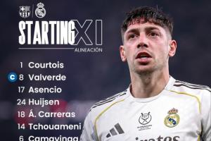 更新后的皇馬首發(fā):1-庫爾圖瓦、8-巴爾韋德、17-阿森西奧、24-赫伊森、18-卡雷拉斯、14-瓊阿梅尼、6-卡馬文加、11-羅德里戈、5-貝林厄姆、7-維尼修斯、16-貢薩洛·加西亞
