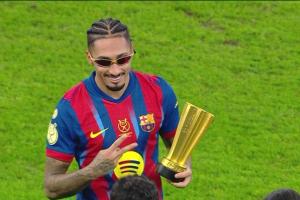 體育資訊01月12日訊 西超杯決賽,巴薩3-2皇馬蟬聯(lián)冠軍,拉菲尼亞本場梅開二度,當(dāng)選決賽MVP。