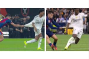 此前在西甲第10輪的西班牙國(guó)家德比,也同樣貢獻(xiàn)這一名場(chǎng)面,當(dāng)時(shí)他拉拽維尼修斯染黃。