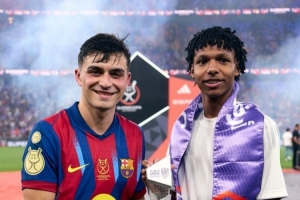 體育資訊1月12日訊 西超杯決賽,佩德里助攻萊萬(wàn)破門(mén),巴薩3-2擊敗皇馬,捧起冠軍獎(jiǎng)杯,賽后佩德里接受了媒體的采訪。