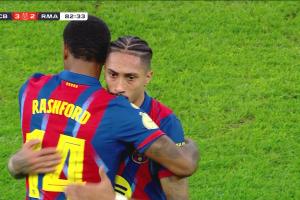 西班牙超級杯決賽,巴薩3-2擊敗皇馬奪冠。拉什福德第83分鐘換下拉菲尼亞,第95分鐘時巴薩3-2領先皇馬,拉什福德跑出半場大單刀,慢悠悠錯失良機。轉過頭來皇馬進攻,姆巴佩直塞禁區,居萊爾下底倒三角,卡雷拉斯點球點附近直面球門的推射被霍安沒收,巴薩險些被絕平,拉什福德幾乎全程眼神防守。