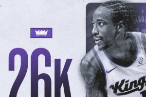 德羅贊常規賽生涯總得分突破26000大關,NBA歷史第23人,現役第六人,僅次于詹姆斯、杜蘭特、哈登、威少、庫里。