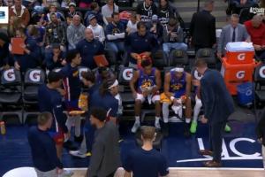 GIF-約基奇西裝革履聲情并茂指點(diǎn)掘金替補(bǔ)席 皮克特頻頻點(diǎn)頭