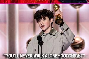 利物浦球迷歐文·庫珀在金球獎獲獎感言環(huán)節(jié)用隊歌“你永遠不會獨行”結(jié)尾??