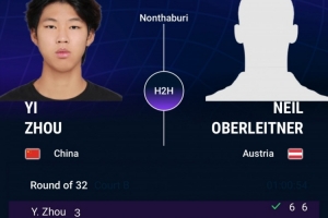 接下來周意將對陣朗莫,后者以7-6(5) 6-2擊敗另一位中國選手崔杰。
