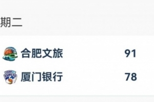 合肥文旅 91-78 廈門銀行,合肥文旅四人得分上雙,納雷德砍下24分12籃板的兩雙數(shù)據(jù),約翰遜15分,卡耶14分,張敏11分。廈門銀行同樣四人得分上雙,謝潑德28分8籃板6助攻,賴婷藝15分,謝爾比12分,蔡亞飛10分