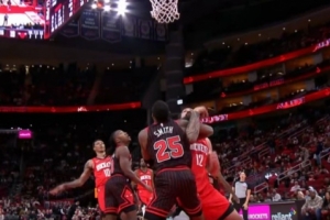 血虧!雙方爭搶籃板出界判公牛球權 火箭挑戰失敗&補吹亞當斯犯規