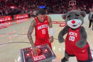賽后,小賈巴里·史密斯出席火箭主場的新儀式,拍下按鈕讓火箭升空。