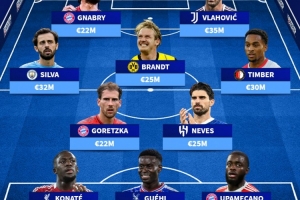 中場:格雷茨卡(拜仁)、魯本-內維斯(利雅得新月)、B席(曼城)、布蘭特(多特)、昆滕-廷伯(費耶諾德)
