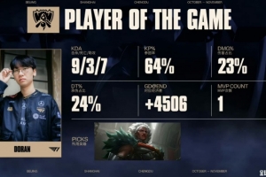 體育資訊11月9日訊 S15總決賽T1拿下第一局,Doran獲得mvp,媒體人王瑋晨寫道: