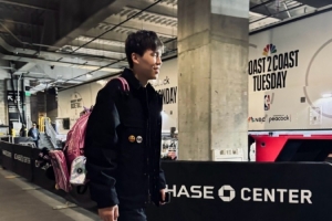 比賽末節,楊瀚森倒地搶球時后腦勺磕到勇士球員理查德的膝蓋,他在簡單休整后選擇回到場上繼續比賽。