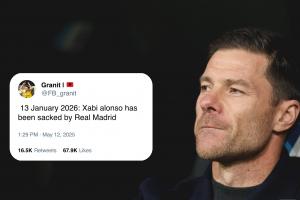 在去年5月12日——也就是羅馬諾用“Here We Go”宣布阿隆索將執教皇馬的當天,這位名叫Granit的球迷發帖預測道:“2026年1月13日,哈維·阿隆索被皇家馬德里解雇。”