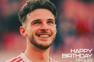 阿森納官方社媒曬出賴斯的生日海報,配文:“生日快樂,德克蘭!”