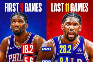 而近11場出場的比賽,場均28.2.分8.4籃板3.5助攻,投籃命中率51.5%,真實命中率61.6%。