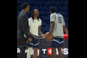 今日灰熊踩場訓練,莫蘭特和隊友文斯·威廉姆斯疑似爭吵,一開始兩人在討論某個話題,指著球場,后續上升到了爭吵,有助教前來拉開也無濟于事,兩人互相攤手,莫蘭特言辭激烈,最終兩人不歡而散。