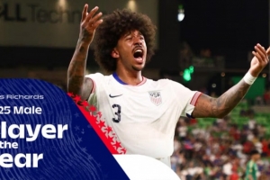 體育資訊1月15日訊 美國足協官方宣布,25歲的水晶宮中衛理查茲當選為2025年美國足球先生。
