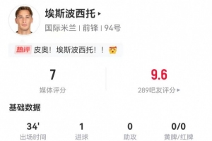 體育資訊1月15日訊 國米在本輪意甲1-0小勝萊切,埃斯波西托本場數據如下: