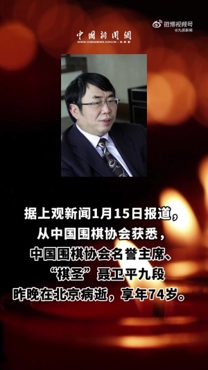 體育資訊01月15日訊 中國圍棋協會名譽主席、“棋圣”聶衛平九段昨晚在北京病逝,享年74歲。