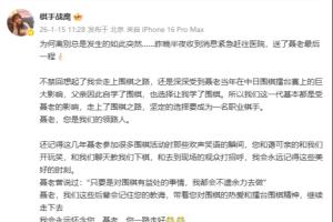 體育資訊01月15日訊 棋手戰(zhàn)鷹發(fā)文悼念聶衛(wèi)平。