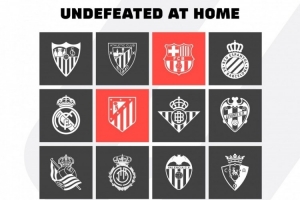 體育資訊1月15日訊 據西甲官方統計,巴薩和馬競是本賽季僅有的兩支西甲主場不敗球隊。