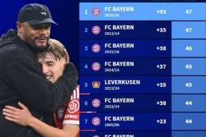 體育資訊1月15日訊 德轉統計表明,孔帕尼帶領拜仁上半賽季的成績創造了德甲歷史。