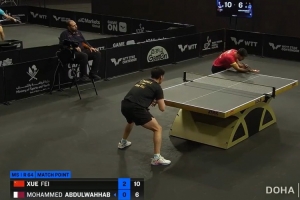 體育資訊1月16日訊 WTT多哈球星挑戰賽男單,薛飛3-0戰勝阿卜杜勒瓦哈卜,晉級32強。